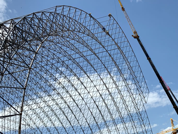 (2)网架加工前应对现场尺寸进行复测,确认无误后方可进行加工、安装;网架制作、运输、安装应遵守《空间网格结构技术规程》JGJ7-2010、《钢网架北碚螺栓球节点》JG/T 10-2009、《钢网架北碚螺栓球节点用高强度螺栓》 GB/T 16939-2016、《北碚钢结构北碚工程北碚施工规范》 GB50755-2012、《北碚钢结构北碚工程施工质量验收标准》 GB50205-2020。